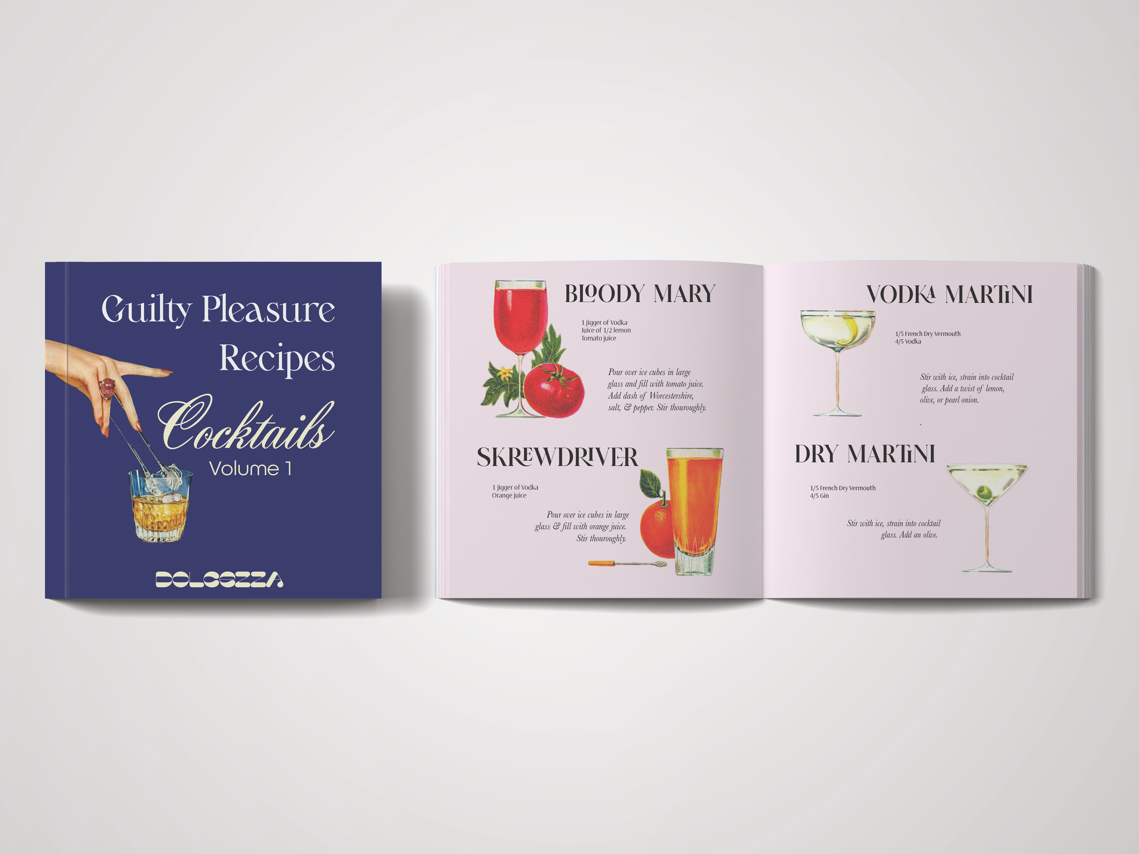 Design for cocktail and dessert recipe books for Dolcezza magazine. Vintage graphics were used to bring about the magazine's characteristics, while the type creates traditional, legible recipe presentations.